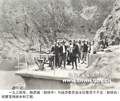 1934年,杨虎城(前排中)与经济委员会主任宋子文(前排右)视察宝鸡峡水利工程