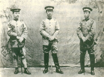 靖国军的三员战将:杨虎城(右)、邓宝珊(中)、张毅安(左)。