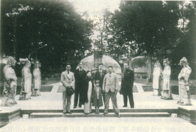 杨虎城(前右一)谢葆真(前左一)及儿子拯中(前中)在杭州岳飞墓前