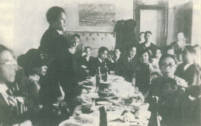 1937年8月20日,杨虎城(站立者)在法国比央古华工招待会上演讲。
