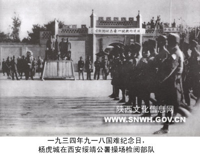 1934年九一八国难纪念日,杨虎城在西安绥靖公署操场检阅部队